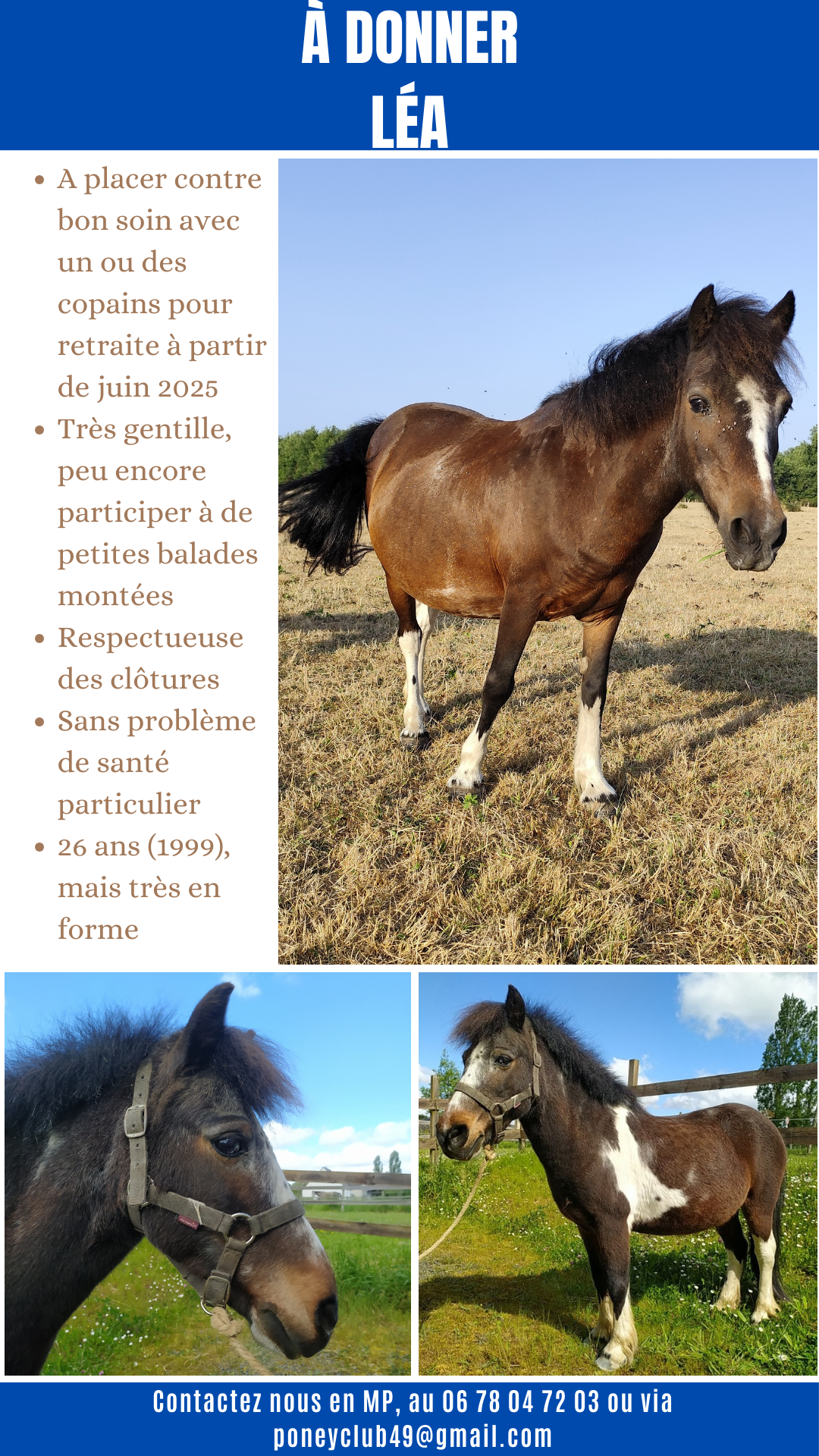 26 ans mais très en forme A placer à partir de juin 2025 Très gentille pour balades montée Respectueuse des clôtures Sans problème de santé