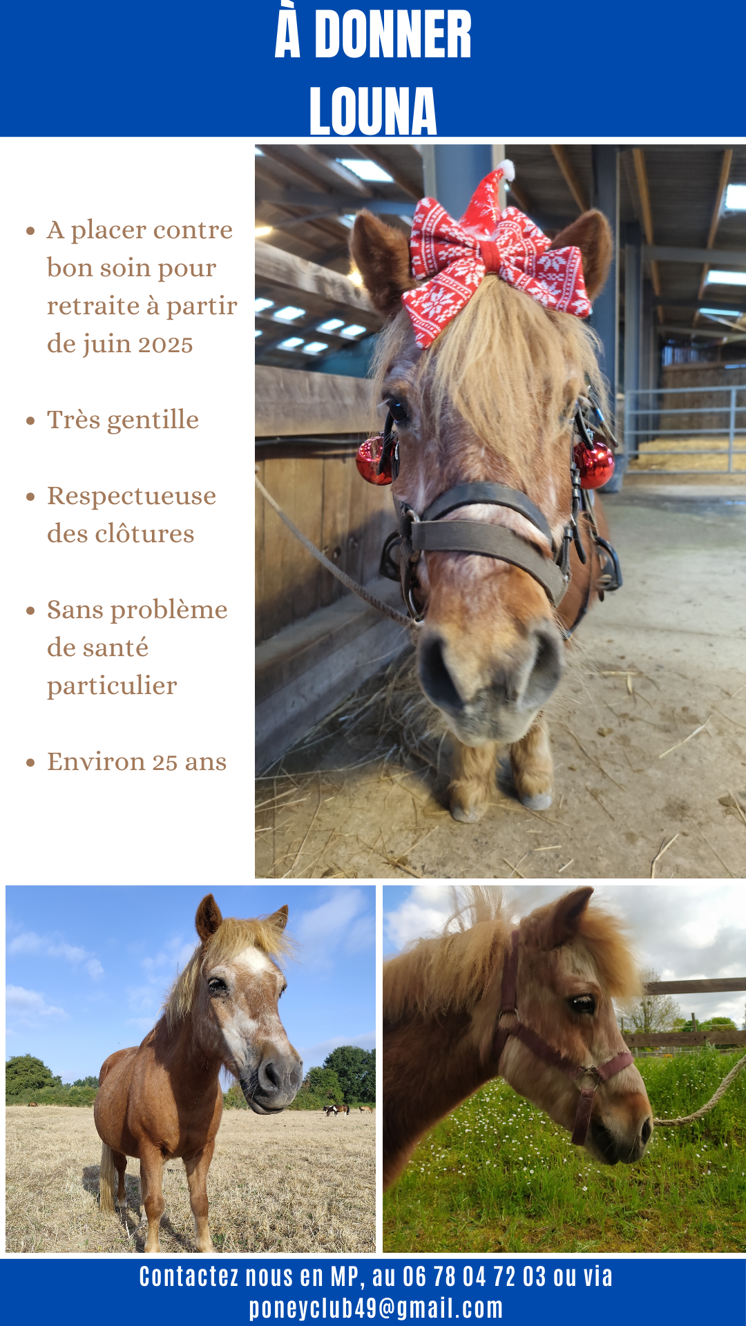 25 ans mais très en forme A placer à partir de juin 2025 Très gentille pour balades montée Respectueuse des clôtures Sans problème de santé