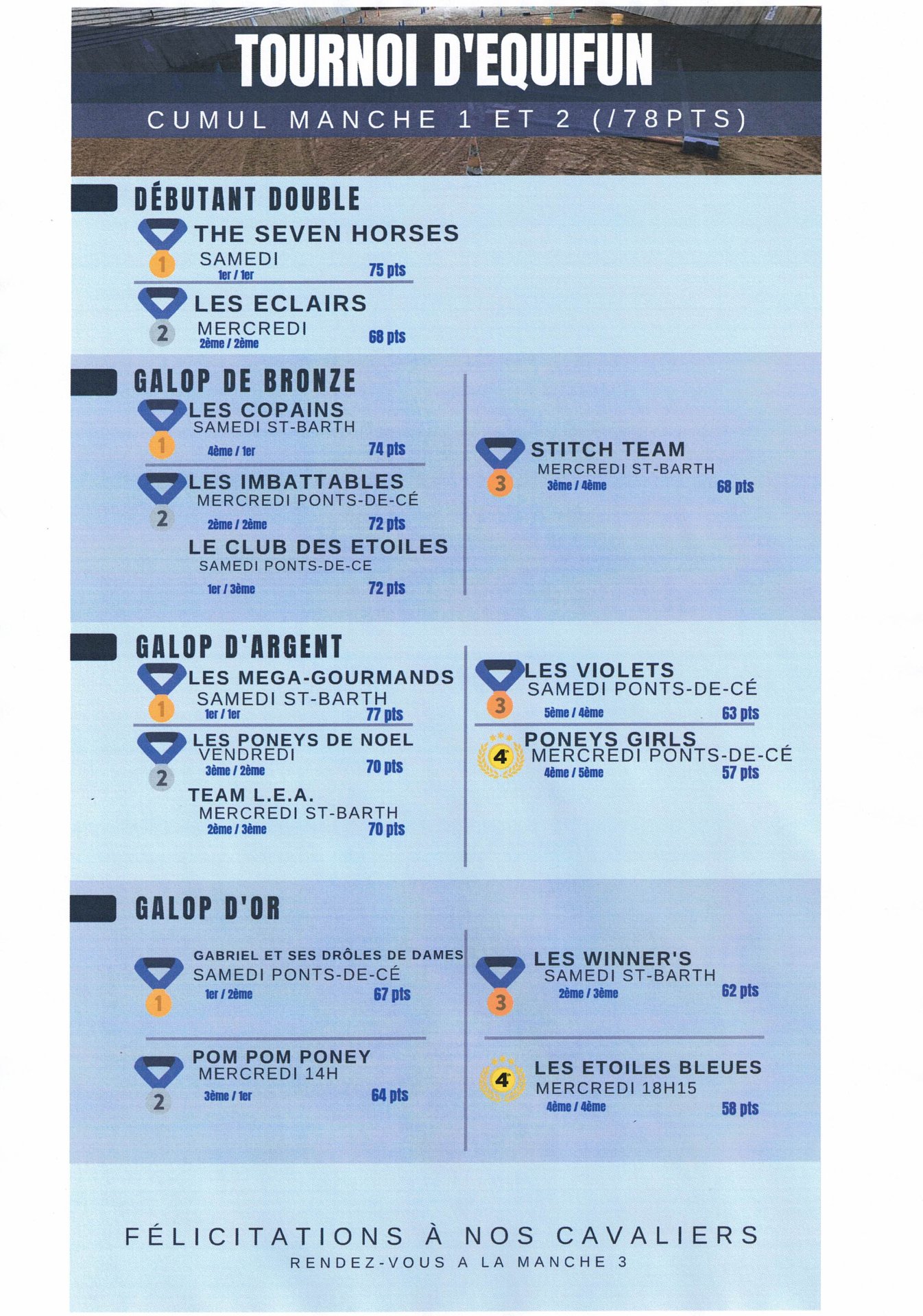 Un classement des équipes selon le niveau des cours sera publié à la fin de chaque manche. Vous pourrez retrouver les résultats en ligne dans la rubrique actualités ou sur le compte instagram du poney club.